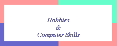 I have quite a few computer skills. I can type pretty well because I took keyboarding my freshman year. I have taken computer apps. this year. I work on my computer at home a lot because I like to try to get my typing up to a good speed. I also learn the computer programs that I have in my Microsoft Office 2000.